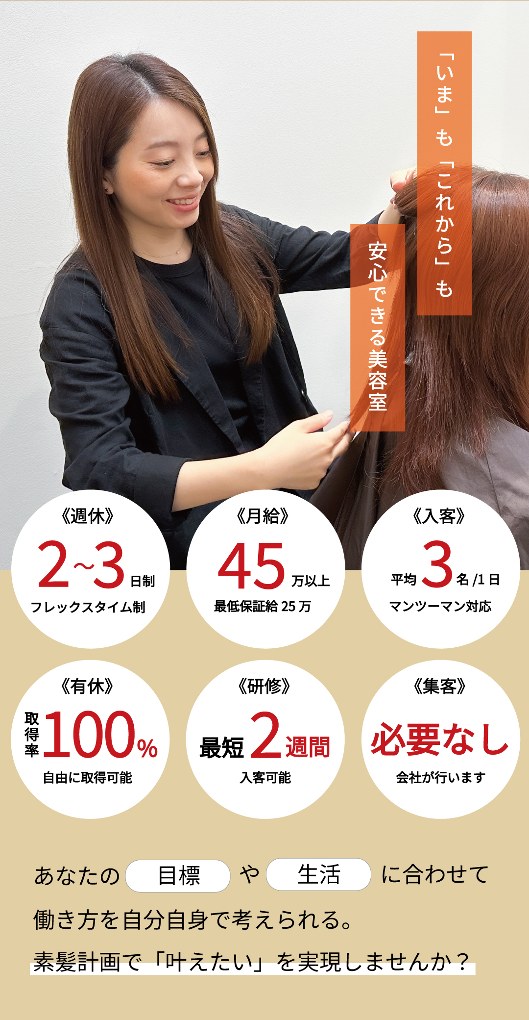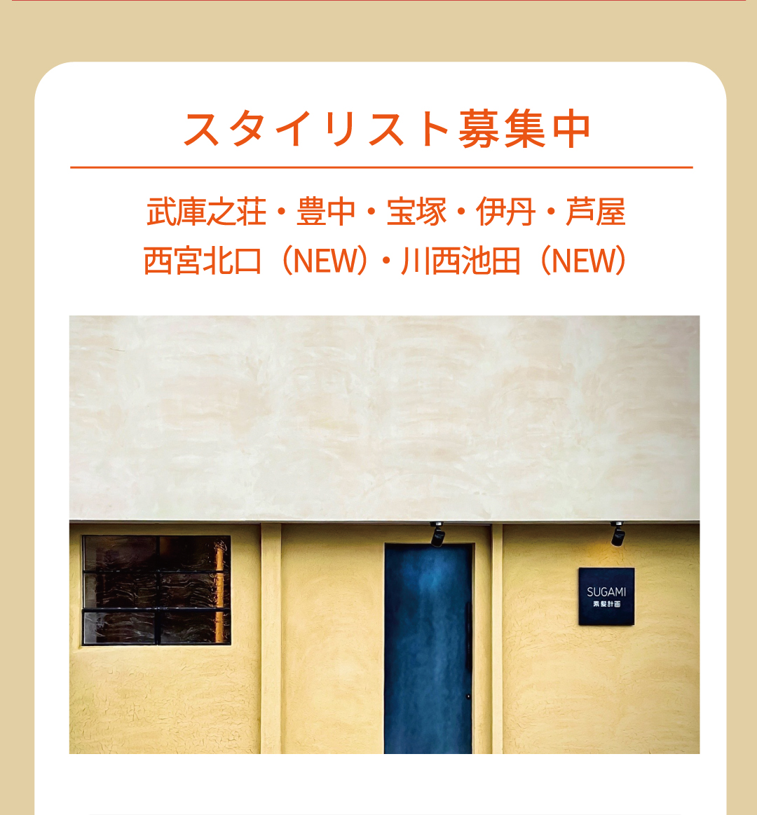 【武庫之荘/宝塚/豊中/芦屋/伊丹/西宮北口/川西池田】「自由なスタイルで美容師を続けたい」が叶う美容室